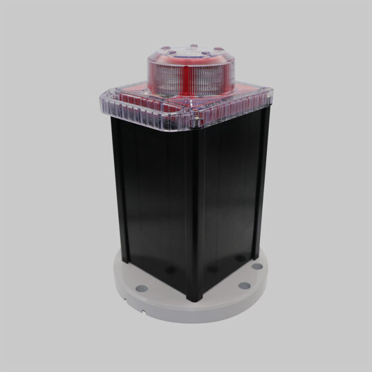 The OL800 solar obstruction light is an integrated solution including a high-efficiency LED light source, solar panels, and battery.